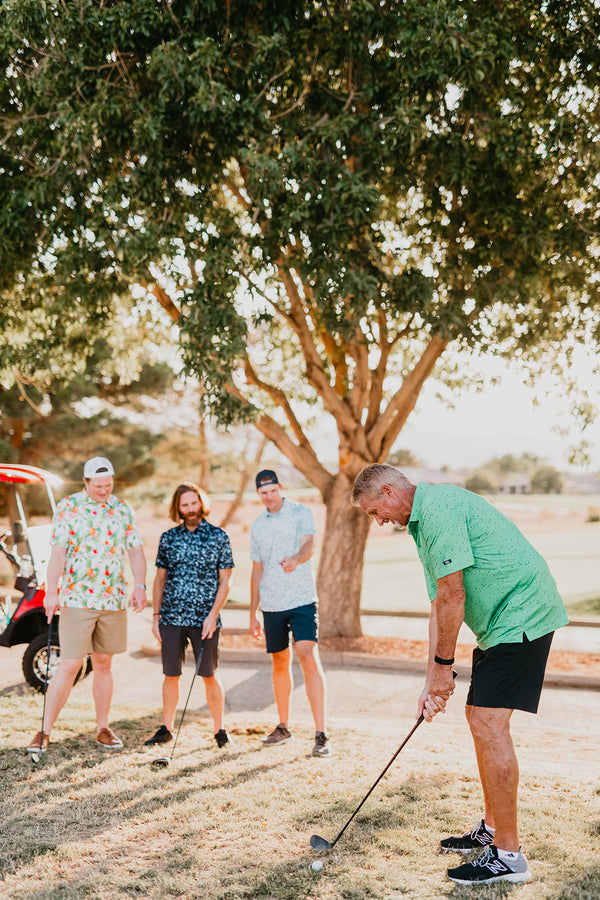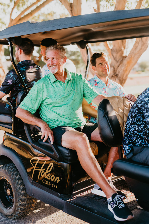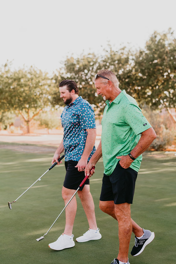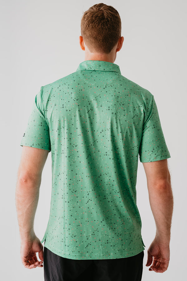 The Turtle Tom is relaxed fitting polo which features a bright emerald green base overlaid with white, black and orange bubbles. This unique eye-catching polo is sure to stand out and can also double as your go to shirt on St. Paddy's Day to ensure you never pinched again!