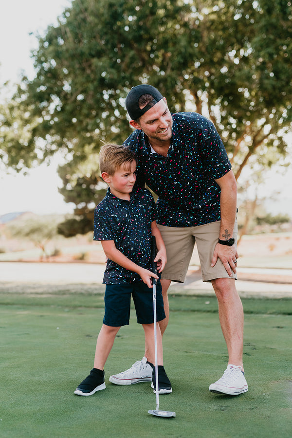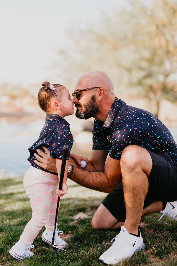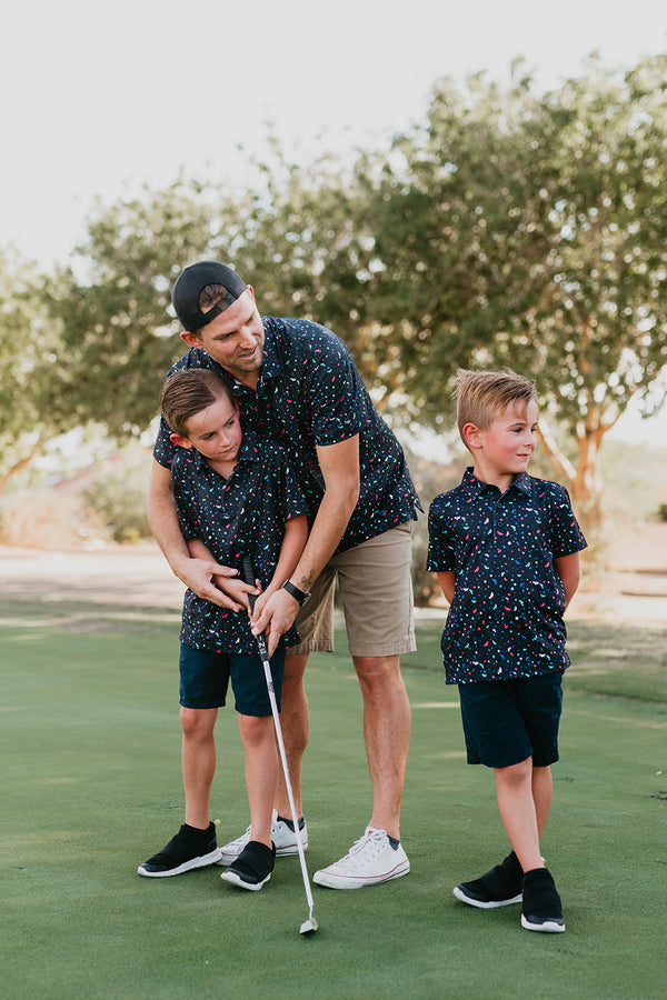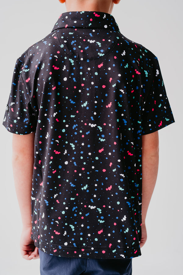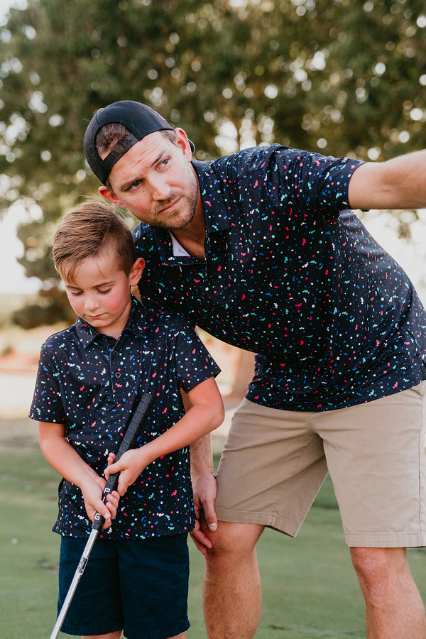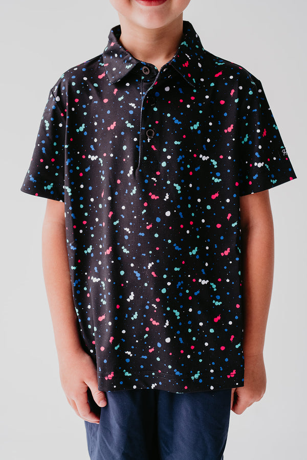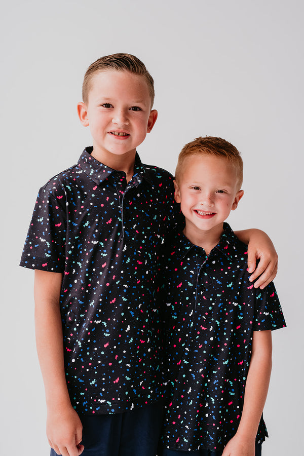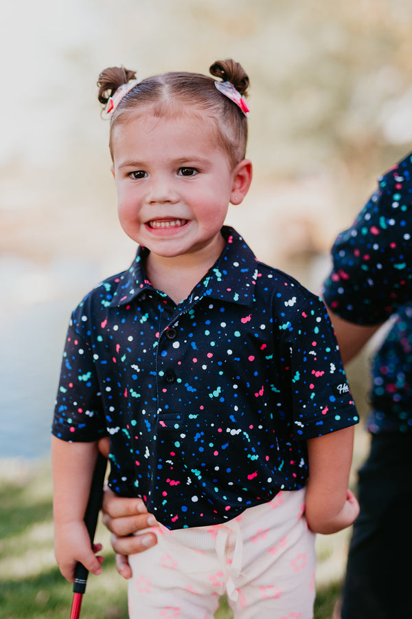 The kid's version of the Jaytown polo, the Ellis features a midnight black base with pink, mint, white and blue paint splatters. Get one for yourself and one for your little one!