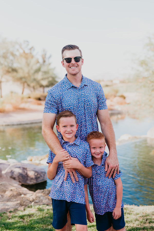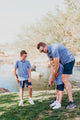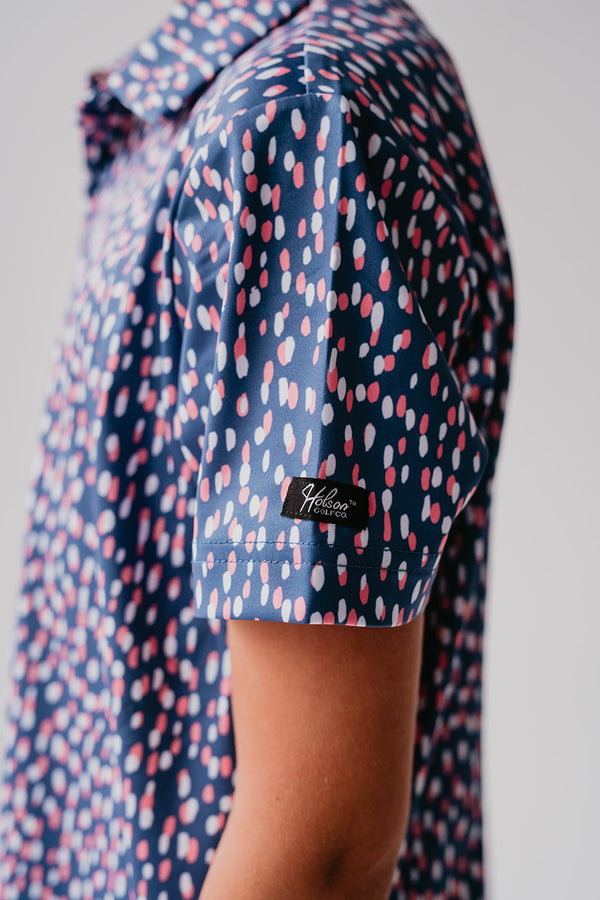 The Palmer is the kids' version of the Reilly, which features a brilliant blue base with pink and white rain drops. This fresh design can be worn in the classroom, for family photos or of course while learning to sink 10 foot putts with Dad. Don't forget to purchase the matching adult version, the "Reilly".